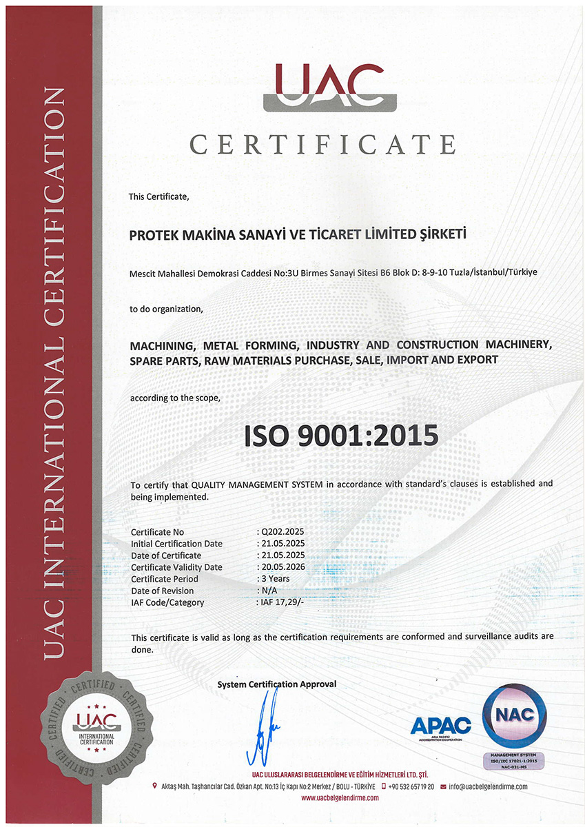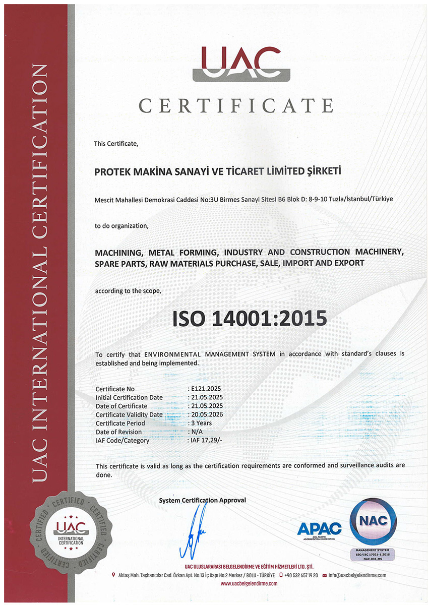 PROTEK MAKİNA San. ve Tic. Ltd. hat sich zum Hauptziel gesetzt, die Energieleistung kontinuierlich zu verbessern, die Kosten zu senken, die Investitionen in die Energieeffizienz zu optimieren, die Umwelt- und Treibhausgasemissionen zu reduzieren und die natürlichen Ressourcen zu schützen, indem sie in ihrem Produktionszentrum das Energiemanagementsystem ISO 50001 einführt und betreibt, und hat in diesem Zusammenhang die folgenden Verpflichtungen erklärt.